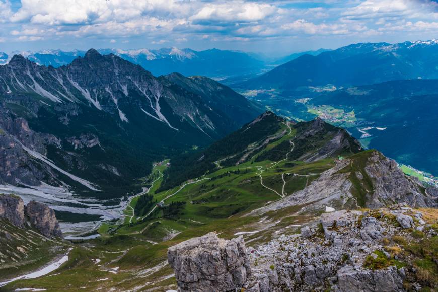 Delve into the Tyrolean valley of Stubaital, exploring its vast mountain vistas.
