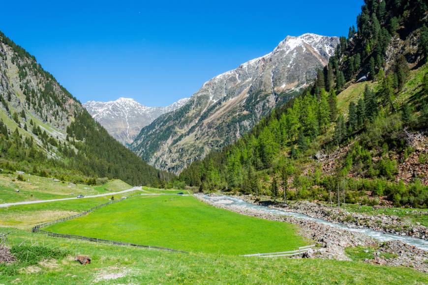 Delve into the Tyrolean valley of Stubaital, exploring its vast mountain vistas.